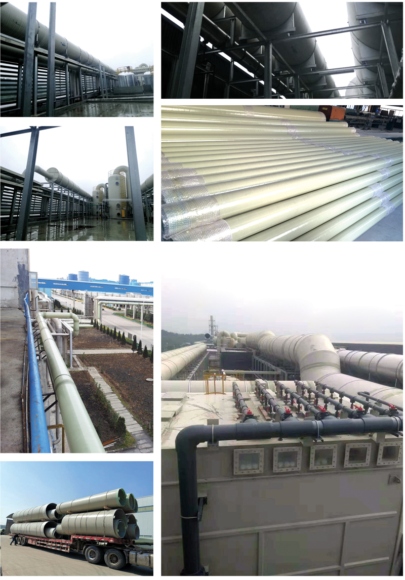性能特點(diǎn): 耐候性?xún)?yōu)良:室外管線可制作膠衣或PU涂層,抗紫外線老化。 耐腐蝕性:可根據(jù)工況需求選用相應(yīng)的樹(shù)脂,滿(mǎn)足其腐蝕性要求??轨o電性:通過(guò)添加石墨或者采用碳纖維氈,滿(mǎn)足有防爆要求的易燃易爆氣體收集。 阻燃性:采用阻燃樹(shù)脂,可制作氧指數(shù)28-32的管材,滿(mǎn)足阻燃要求。 耐高溫:選用耐高溫樹(shù)脂,滿(mǎn)足管道輸送高溫氣體的要求(可高達(dá)200℃)。
